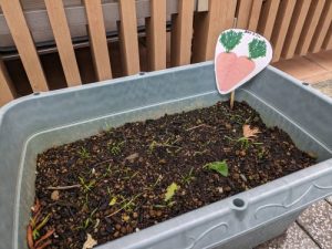 白山園では先月から育てているにんじんさんの芽が少し顔を出しています^^🥕