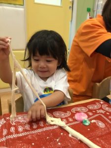 そして、午前の活動として『小麦粉粘土』に挑戦しました。