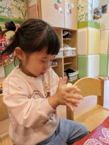 お給食の時間ギリギリまで一生懸命にコネコネと楽しんでいる姿がありましたよ🎨