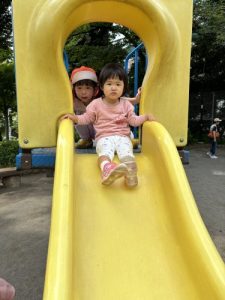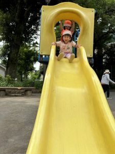 白山公園は保育園からちょっと遠くて普段中々遊びに来れない公園なので、お子さまたちは大はしゃぎ!!!それ〜っと元気よく走り回るお子さまたち。滑り台もあり、「じゅんばんこ〜」っと言いながら、一人ずつ滑っていました🛝時々、上まで登ったにも関わらず、急に怖くなって、「すべりたくない〜やだ〜😭」っと言っているお子さまもいましたが、保育士が「手を繋いであげるから滑ってみよっか!」っと言うと怖々滑っていましたが、滑り下りた瞬間、どんなもんだい!っと自信満々のお顔をしていました😆一つ一つ、自信がついていくことはほんとに良いことですね🧡