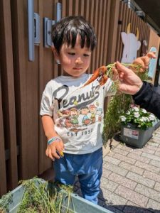 これからもたくさんのお野菜と触れ合い、もっともっとお野菜のことを大好きになってもらえるように保育士一同、精一杯努めさせて頂きます。