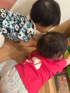 はじめに、ご紹介です。8月1日より、もも組に新しいお友だちが増えました👶🏻💓玩具を貸してくれたり優しく頭を撫でて可愛がってくれるりんご組さんといちご組さん。もも組さんはお友だちが増えて嬉しいね!!これから、たくさん楽しい時間を過ごしていこうね♬.*゚