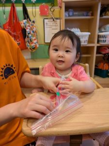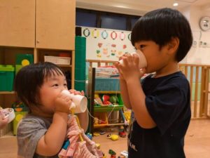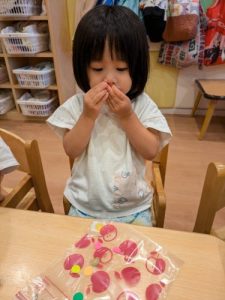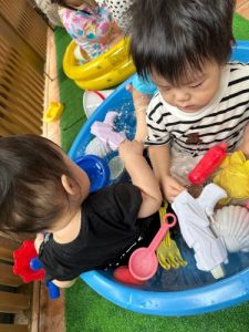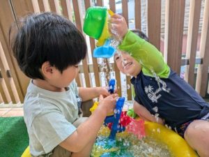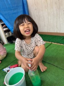 みんな大好き水遊び!!特に色水遊びが大好きでお子様たちで色水を分け合いながら色々な色を作って楽しんでいます。