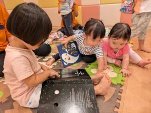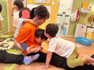 今週は、ボランティアのお姉さんが保育園に来てくれました😊初めはちょっぴり恥ずかしそうなお子様たちでしたが、お姉さん先生の明るさに引き込まれるように楽しそうに過ごしていました◡̈*.。お昼寝から起きると「お姉さんは?」と寂しそうなお子様たち。「また遊びに来てもらおうね!!」とお子様同士でお話する姿がとでも愛おしかったです♡