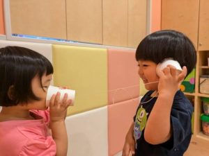 糸電話で名前の呼び合いᕷ*.°見ているだけでホッコリです😌💕
