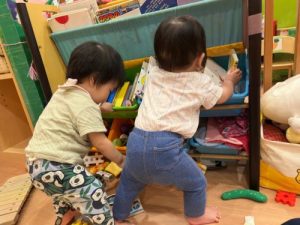 色々なものが気になって仕方ないもも組さん。最近はイタズラが増えてきて😋お気に入りの玩具を使って夢中になって遊べるようにもなりました♪