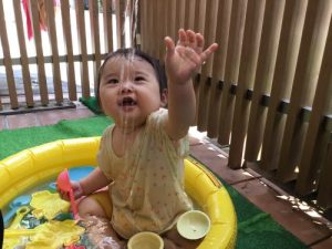 もも組さんはお水をパシャパシャ叩いてお水の感触を楽しみながら夢中になって遊んでいます🐳