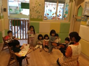 この絵本には、色んなお目目や、にっこりな顔やイヤイヤな顔、小さいお顔や大きなお顔、たくさんのお顔が出てきます。お子さま達は、この絵本を見ながら、みんな真似っこしてさまざまな表情見せてくれていて、私たちはそんなお子さま達の可愛らしい表情をたくさん見られて、とってもほっこりさせて貰っています♡