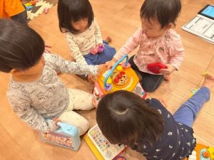室内では、大好きな玩具を手に取り一人ひとりが集中して遊んでいます。時には、同じものが欲しくなってしまい、ぶつかってしまうこともありますがきちんとお子様同士で話し合いをし仲良く遊んでいます🥰