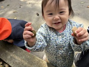 ますます深まる秋を感じながら、自然との触れ合いを楽しんでいるお子さまたち。息を吐けば白くなり、少しづつ冬が近づくこの頃…お子さまたちは、寒さを吹き飛ばすかのように元気いっぱいに戸外遊びを楽しんでいます☺️💓