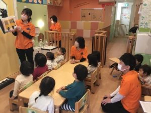 この絵本では、赤、黄色、緑色などの色んな色のバスがやってきて、お子さま達は、自分の大好きな色のバスが来るとニッコリ😄嬉しそうな表情をしてくれます。私たち保育者が絵本を読んでいると、お子さま達のウキウキしている可愛らしい表情が見られるのが、とっても癒される素敵な絵本です。