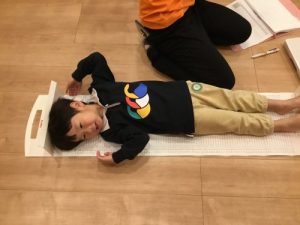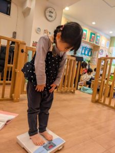 今回の身体測定は椅子にキチンと座っているお子さまから名前が呼ばれ、測定開始です!