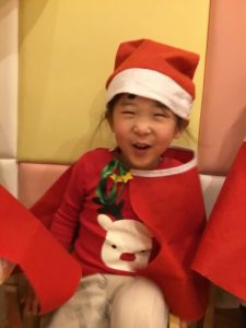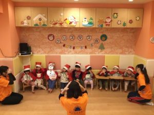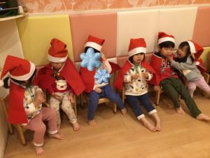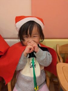 25日はクリスマス会を🎄✨サンタさんの衣装を身につけ、クリスマス会のはじまりで〜す!!