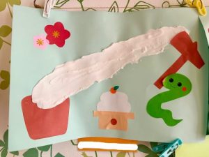 粘土を使ってお餅を表現!!びよーんと弾力のあるとても美味しそうなお餅が完成しました!!壁面製作で粘土を使うのは初めてだったため、お子さまたちも興味津々😃💚楽しそうに製作する表情にホッコリ。癒されました🥰