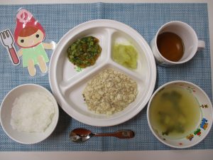 「ごはん全部食べたよー!!」と元気良く教えてくれました♪ひじきの和え物は、かつお節としょうゆで和えシンプルな味付けでした。子どもたちは、シンプルな味付けの方がお野菜もたくさん食べてくれるようです!(^^)!