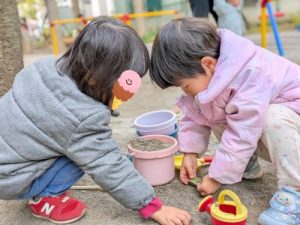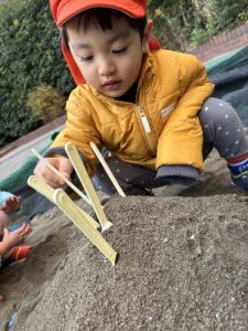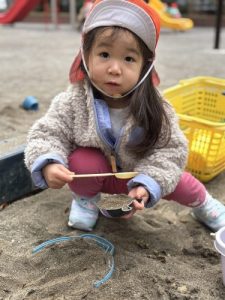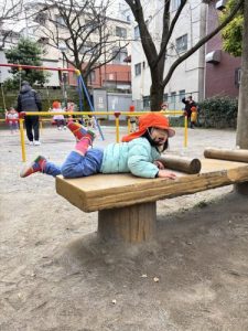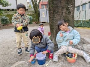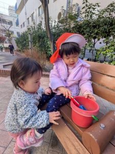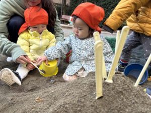 ポカポカ陽気とはいえ真冬の空の下でも、外遊び中のお子さまたちは元気いっぱいです˗ˏˋ 𖦊ັ ˎˊ˗