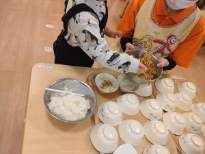 ※2歳児は、ご飯とふりかけを別々に盛り付け、自分でふりかけをかけて食べるようにしても良い