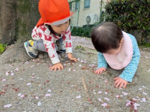 桜の花びらが舞い散る中で、外遊びを楽しみました🌸お子さまたちは遊具で遊んだり、追いかけっこやかくれんぼ、花びらを拾い集めて舞い散らしたりと、笑顔いっぱい楽しむ姿が見られました。ほんと可愛らしいですね。◕‿◕。❤︎