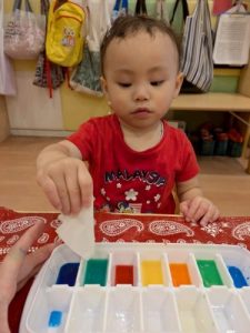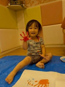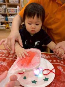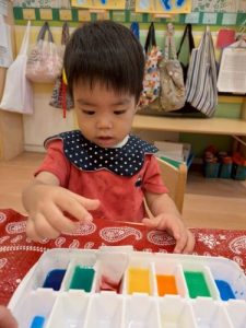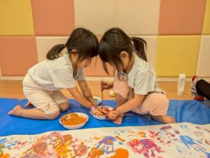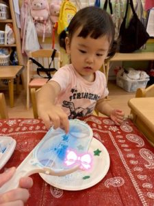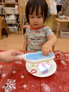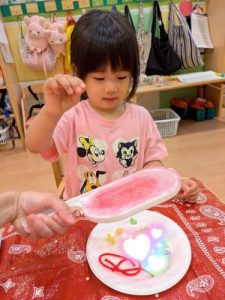 最初は初めての技法にドキドキしたお子さまたちでしたが、次第に自分で手を伸ばし、行うことができました✨