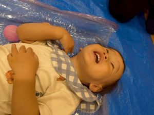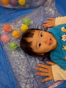 出来上がったウォーターベットの上を歩いたり、ゴロンと寝転がったりっていましたよ✨