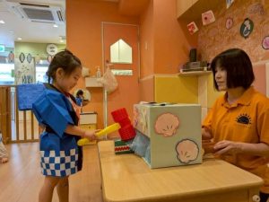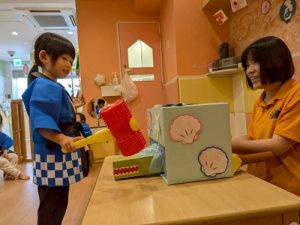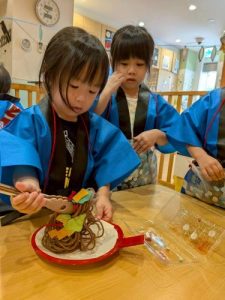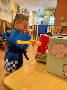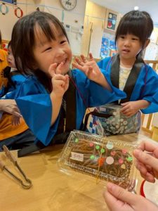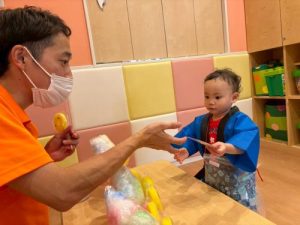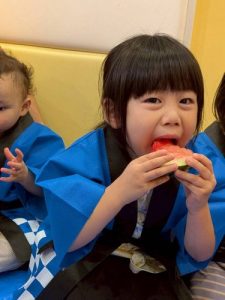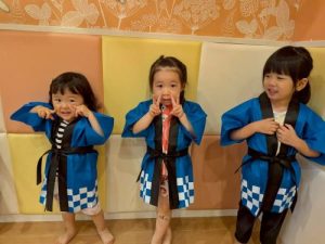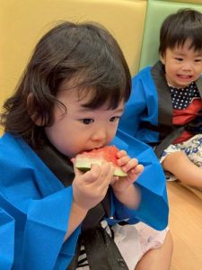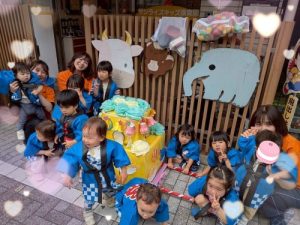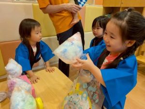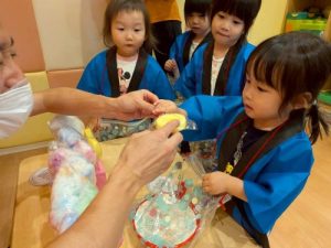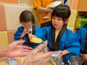 先日、園で夏祭りを行いました‼︎お子さまたちは、いつもとは違う特別な雰囲気に胸を躍らせながらわくわく🩵