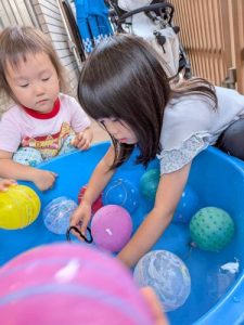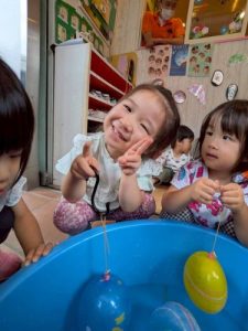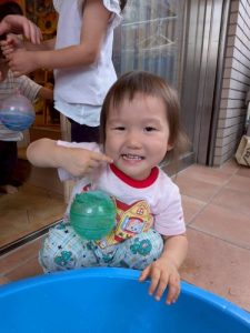 縁日では、ヨーヨーを一生懸命引っ張って「とれた!」と嬉しそうな表情😍