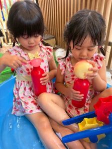 今年は猛暑が続きお水遊びができない日もありましたが、例年よりも少し長い期間お水遊びを実行することができましたよ。