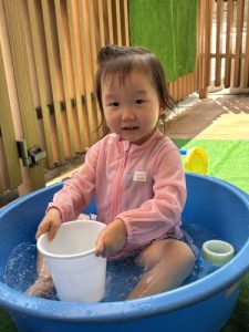 「今日はお水遊びするー?」と登園早々職員に確認し、自分で水着にも着替えていました♡