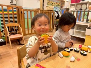 そして新しいおままごとでピクニックごっこもしていますよ😊