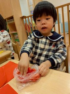 みんなでいちご狩りの準備をしましたよ🍓