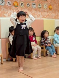 つづいて、卒園児自身が選んだ大好きなお歌を、一人一人みんなの前で発表しました。たくさん練習し、本番では、今までで一番大きな元気な声で、身振り手振りで発表することが出来ていて、とっても素敵でした✨
