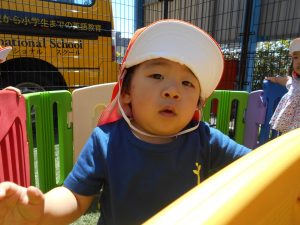 園庭ではボールを蹴ったりおうちごっご用のサークルに入って楽しんでいました。