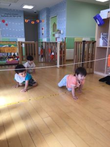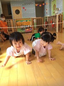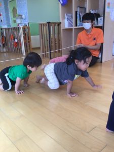 そのあとはロープを使って、下をハイハイでくぐるゲームをして