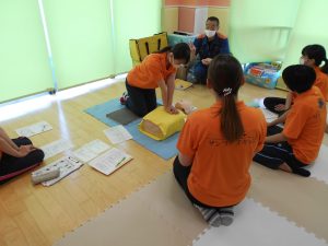 あってはならないことですが、万が一の時慌てず対処できるようにと職員全員で講習を受けました。