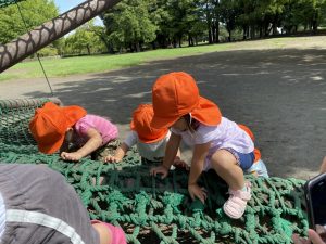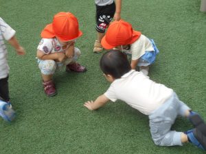 芝生の上の虫をみんなで囲んでみたり色々なことに興味深々でした。