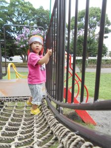 公園の大きな遊具で遊びました。滑り台につながる橋がとても楽しそうでした。