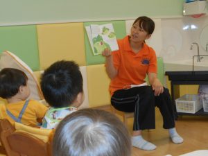 等が人気でした。きちんと椅子に座って保育士が読む絵本の世界に入り込んでいます。