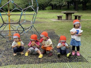 2人ずつ手をつないで公園内を歩きお茶休憩をして保育園に帰りました。