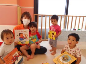 保育士が読み聞かせをする絵本、たくさんの絵本を頂き、子ども達も保育士も