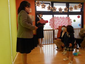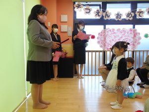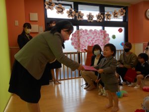 なったりんご組さん。その成長を嬉しく感じながら証書を渡すことが出来ました。