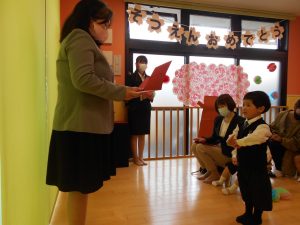 みんな背筋をピンと伸ばし、そして嬉しそうに卒園証書を受け取りに来ました。