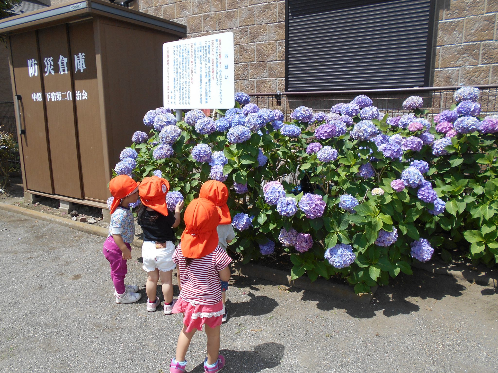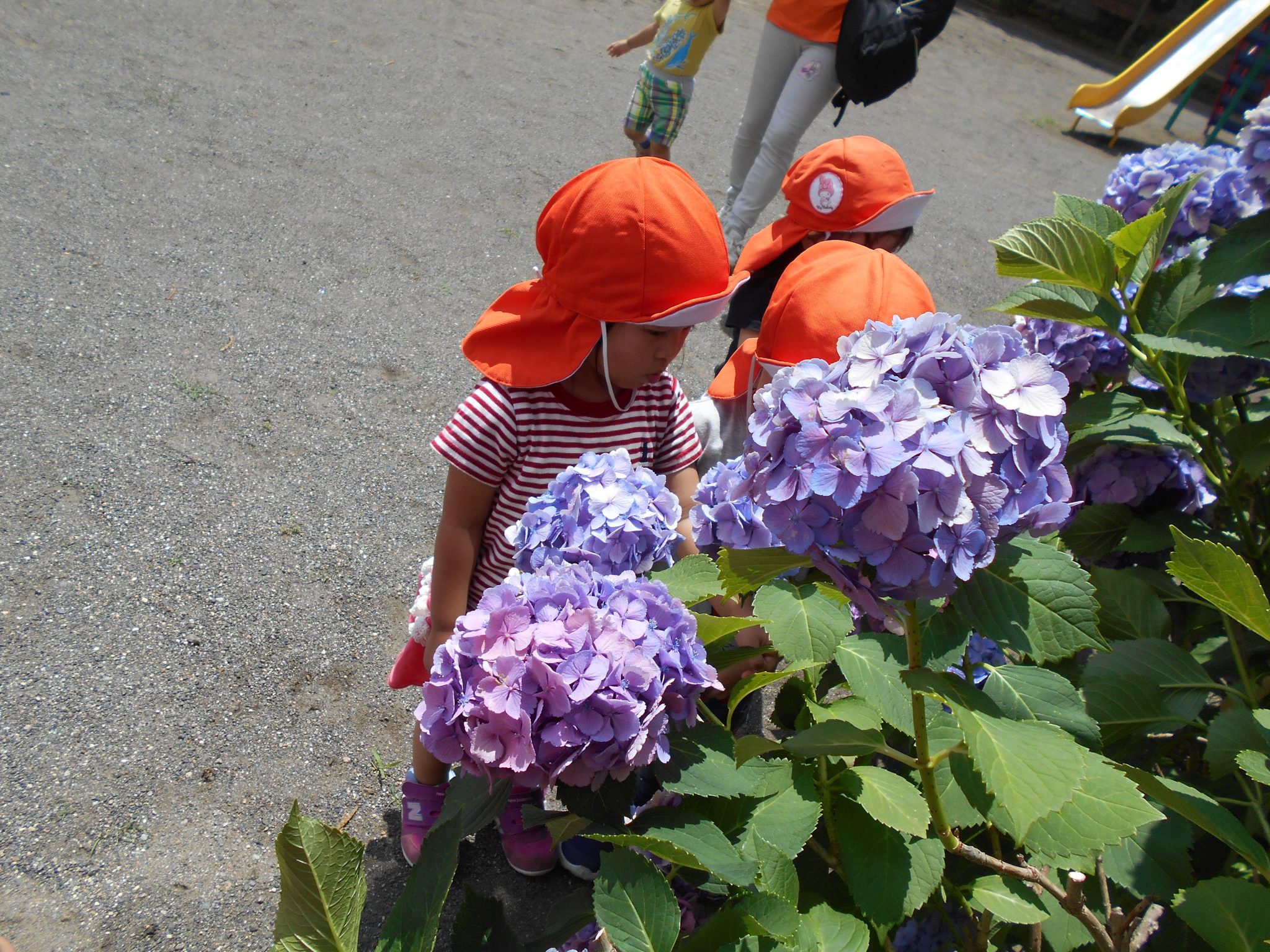 こちらの公園もアジサイが満開!そっと触って観察する子ども達☆