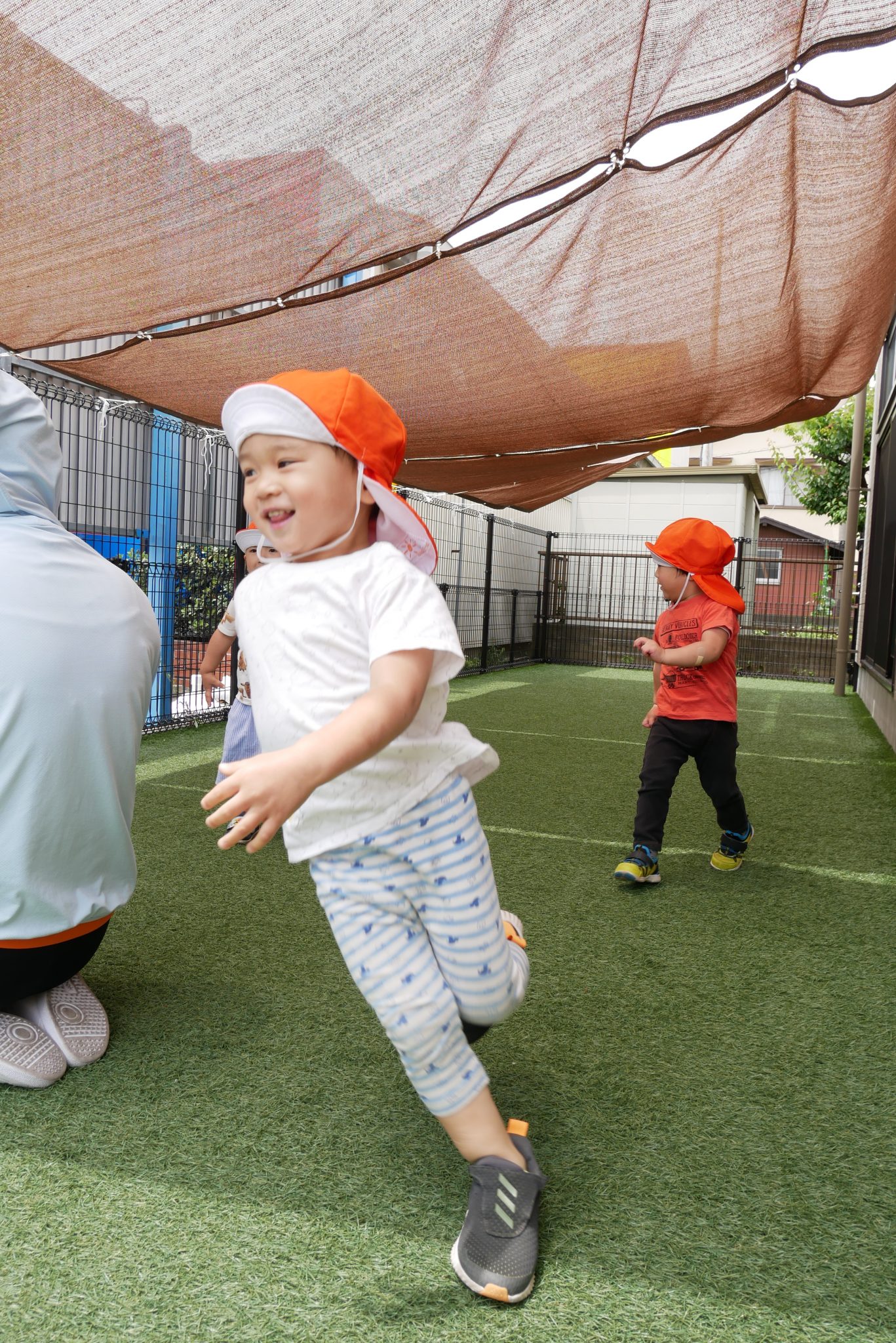 かけっこやボール遊びをしたり暑い日には霧吹きでお水をかけてもらい涼を味わったり