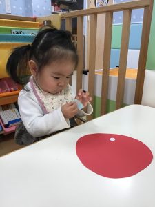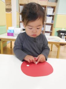 途中でいちごが美味しそうに見えてきたのか、シールを口に運ぼうとしている子もいました!