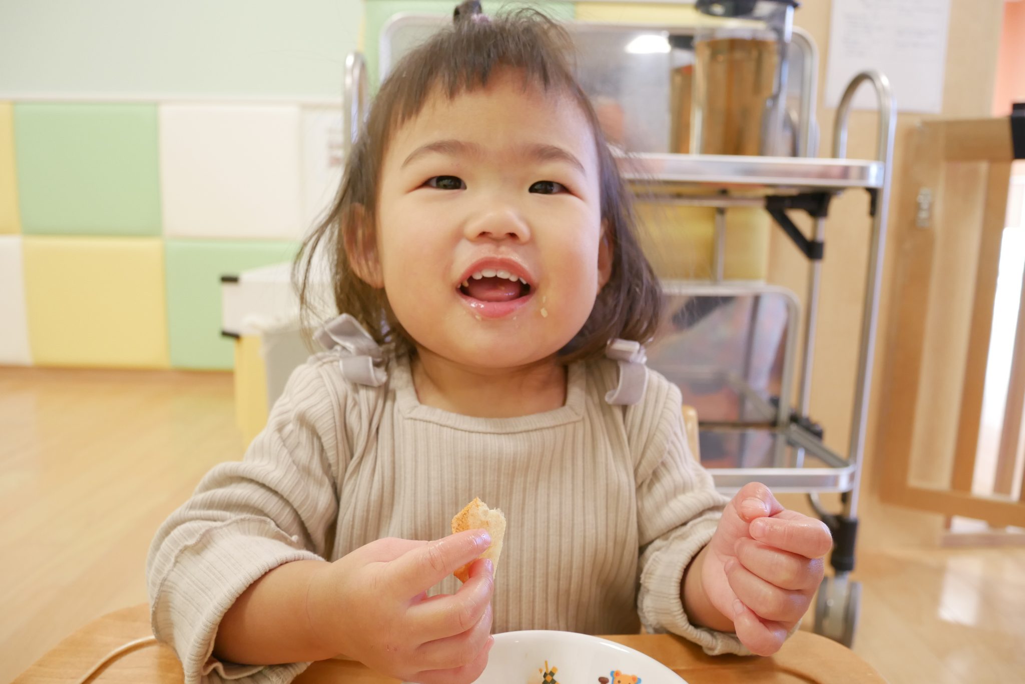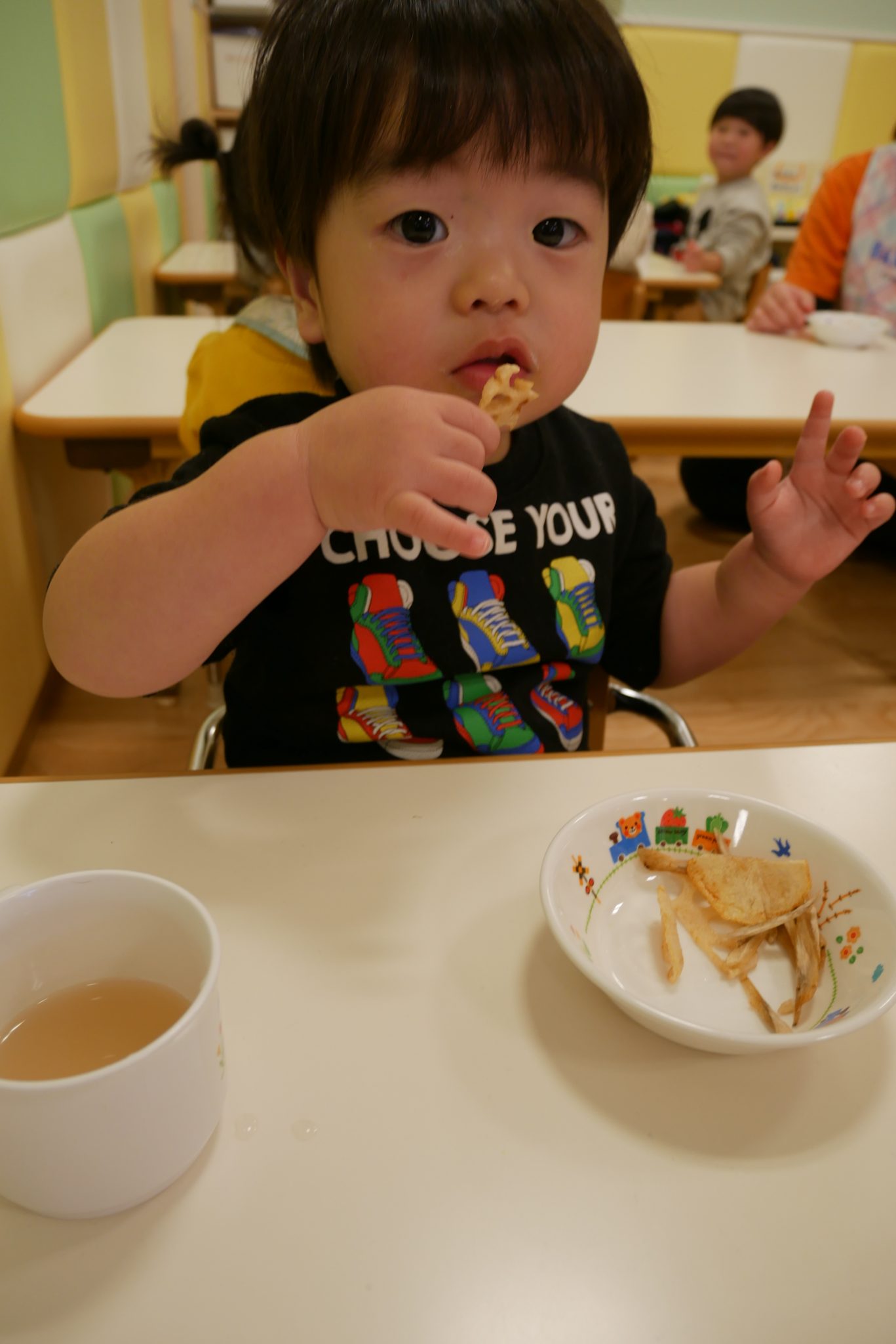 たくさん遊んでたくさんお昼寝をした後は大好きなおやつの時間?