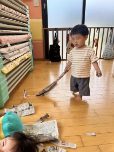 今週は新聞紙を使って遊びました!