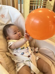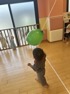 もも組さんはいちご組さんと一緒に風船で遊びました!