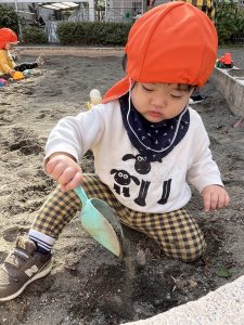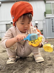 砂場ではスコップを使って穴を黙々と掘って楽しむお友だちがいました!
