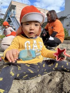 公園ではお砂場でお友だちと大きなお山作り🗻をし、