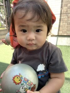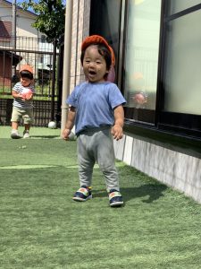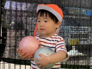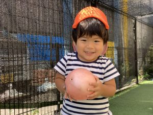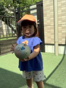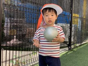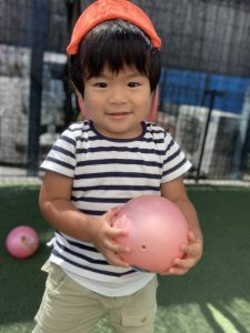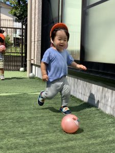 ボールを前に投げることがとっても上手でボールを自分で投げては拾いに行き、